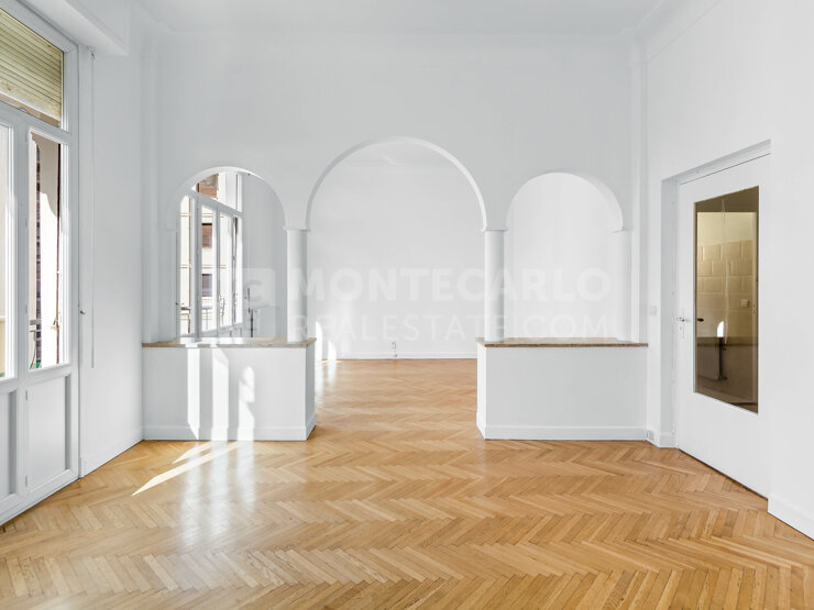 Cet appartement familial entièrement rénové offre des prestations et finitions de très grande qualité. L'appartement grâce son orientation et à ses multiples ouvertures bénéficie d'un bel ensoleillement et d'une belle lumière naturelle. Tourné ver...