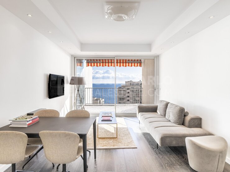 Au sein d'un immeuble de très bon standing avec service de conciergerie 24h/24, ce très beau 3 pièces, entièrement rénové et en étage élevé, offre une vue très agréable sur la mer.