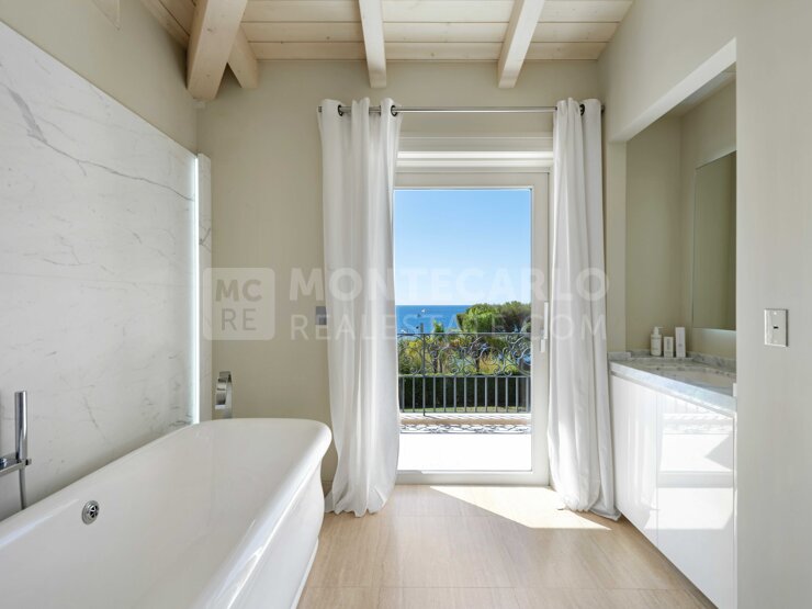 Dans une résidence de standing, avec piscine, tennis, concierge appartement en rez-de-jardin avec terrasse, piscine privée et jardin, vue splendide sur la mer, le cap-ferrat et le village d'Eze.