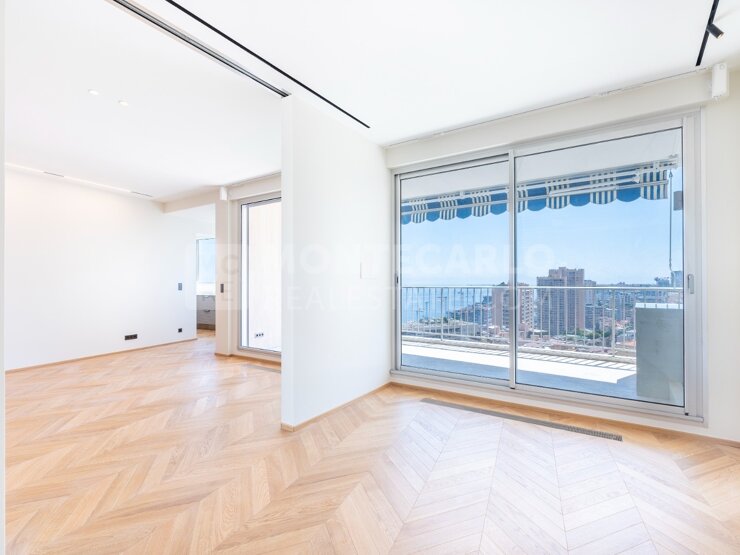 Exceptionnel bien de 7 pièces au 28e étage du Chateau Perigord, avec terrasse toute en façade offrant une vue panoramique sur la Principauté !