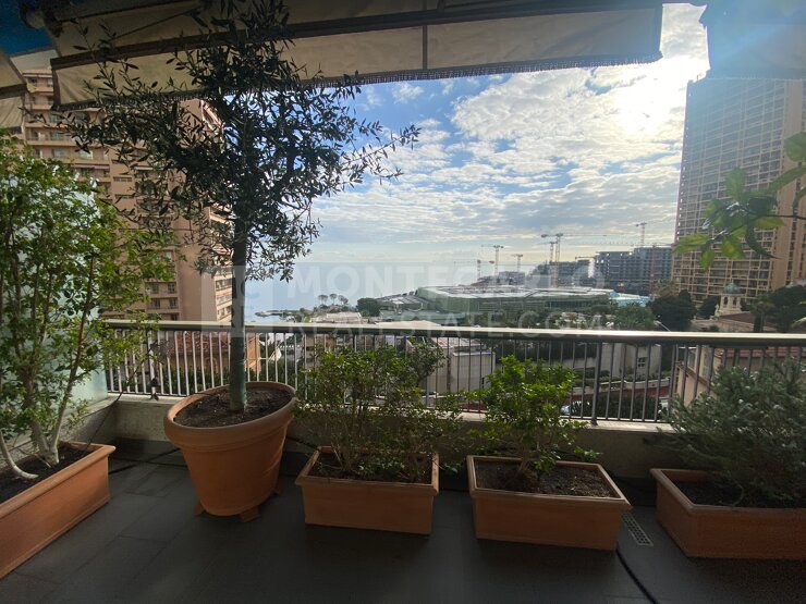 Résidence Trocadéro, studio exclusif comprenant une terrasse de 10 m2, proche des plages du Larvotto et du Boulevard des Moulins ... bénéficie d’une vue mer et jardins.