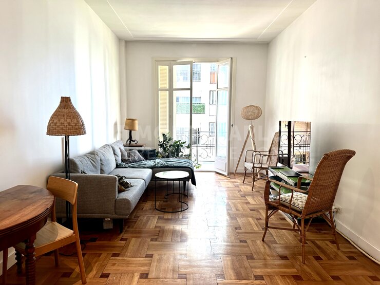 Magnifique appartement de type 2 pièces situé rue de la Buffa à Nice en plein centre ville. Appartement traversant, très lumineux. Appartement traversant de 65m2 situé rue de la Buffa dans le centre ville de Nice.  Il est compos&e...