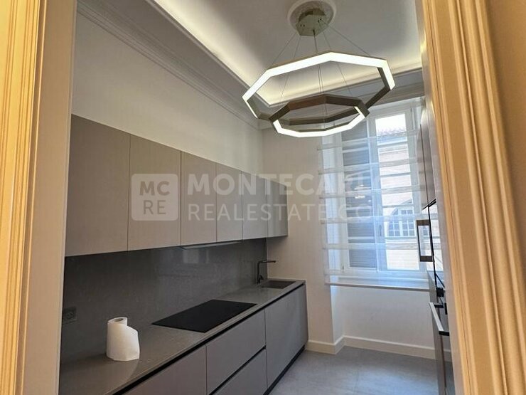 Rare, immeuble bourgeois avec une magnifique vue sur le Port Hercule et ses superbes yachts.Cet appartement tout en façade, se compose d'une entrée, un dégagement donnant accès au grand séjour avec cuisine intégrée, un salon, une buanderie, un toi...