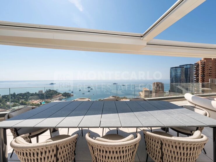 Situé en derniers étages dans une résidence de haut standing à deux pas de Monaco. Ce penthouse sur 4 niveaux bénéficie de plusieurs grandes terrasses de 446 m² au total, exposition plein Sud, avec vu...