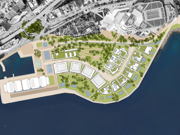 Ce futur quartier écoresponsable s’étendra sur 6 hectares gagnés sur la mer entre la contre-jetée du Port Hercule et le Grimaldi Forum.