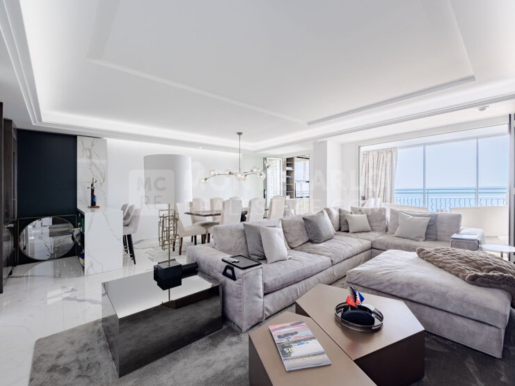 Grand appartement de 4 pièces traversant totalement rénové avec des matériaux haut de gamme, offrant une vue imprenable sur le port de Fontvielle. Dans une résidence de standing du quartier prisé de Fontvieille, découvrez c...