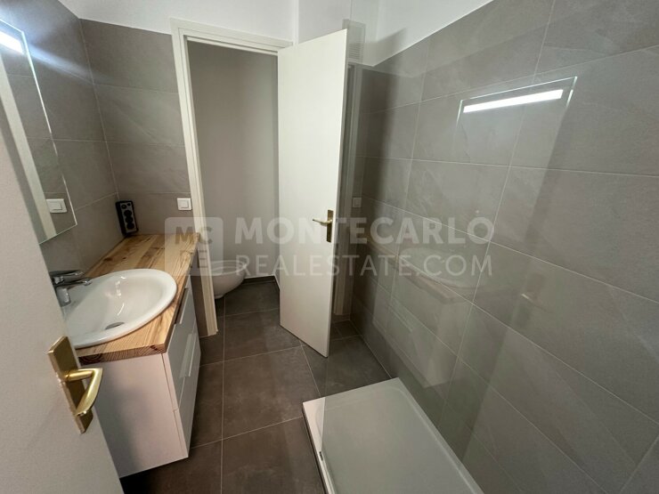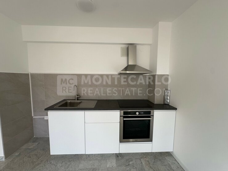 Une entrée avec placards, une salle de douche, séjour avec kichnette, un balcon