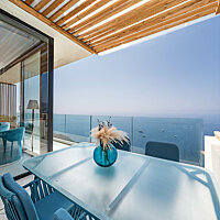 • Grand séjour lumineux avec accès direct à une terrasse d’environ 100 m², exposition sud, entourée de verdure et équipée d’une cuisine d’été