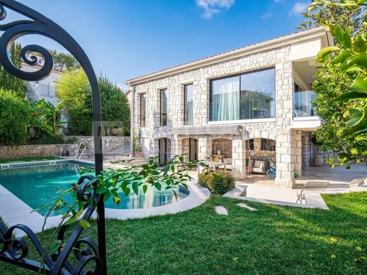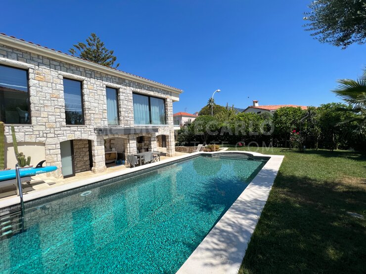 В жилом районе Hameau de Roquebrune Cap Martin, красивая новая недвижимость из камня с садом, бассейном и домиком у бассейна.
