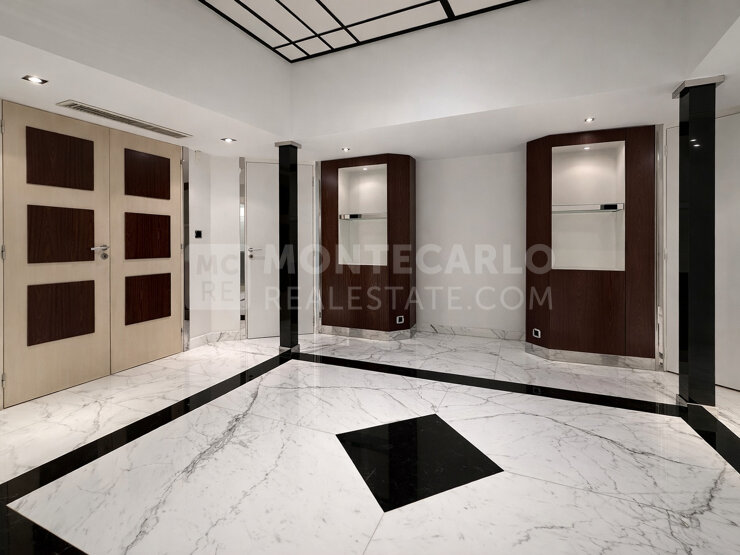 Апартамент отличается просторными помещениями и качественной отделкой, предлагая комфортную и элегантную атмосферу для проживания. Квартира находится в отличном состоянии и включает пять спален или кабинетов, просторную гостиную-приемную, оборудованную кухню, а также многочисленные места для хранения.