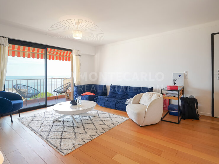 Кап д'Ай, всего в нескольких минутах от Монако: великолепная 3-комнатная квартира площадью 57 м², полностью отремонтированная, с захватывающим видом на море и Монако.