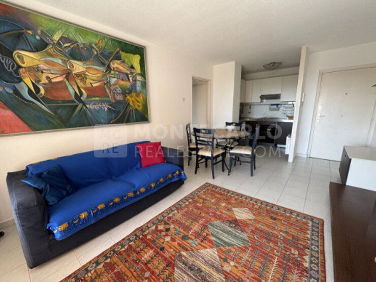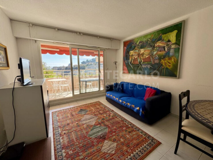 Appartement se situant à Beausoleil, dans une résidence avec gardien, piscine, sauna et solarium. 2 pièces situé en étage élevé, composé d'un séjour avec cuisine américaine, chambre, salle de bain, toilette et terrasse en exposition sud sur la mer Méditerranée et Monaco.