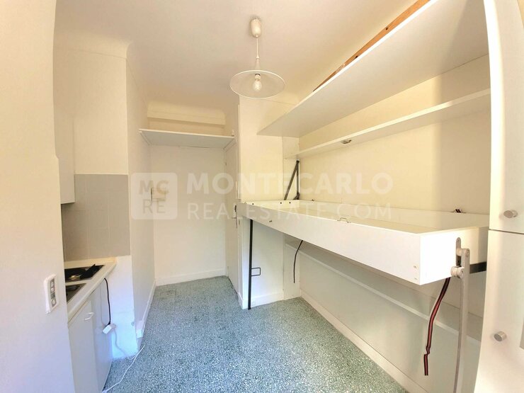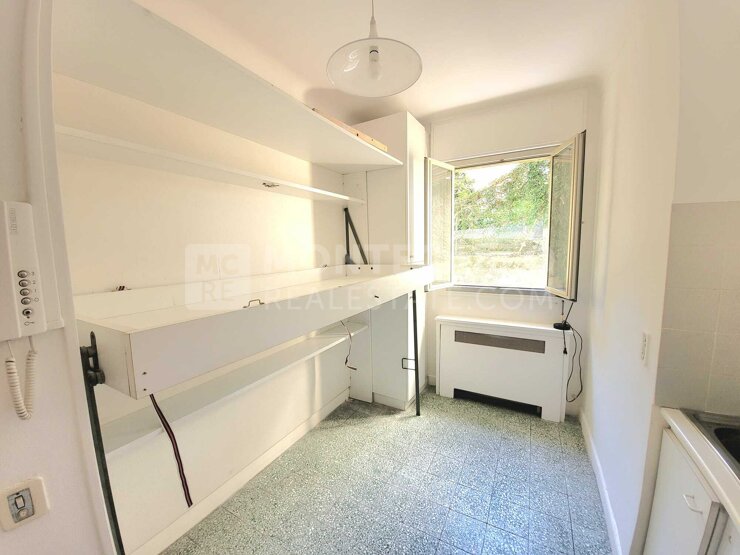 Chambre de service au calme absolu mais idéalement située à proximité des plages du Larvotto et de tous les commerces. Elle se trouve dans un bel immeuble avec gardien.