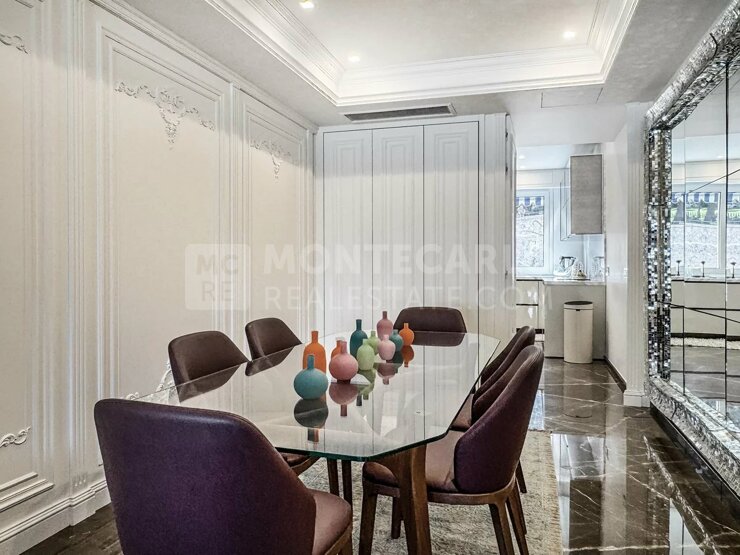 Всего в нескольких шагах от легендарной Площади Казино и знакового Café de Paris расположены эти уникальные апартаменты в одном из самых престижных районов Монако. Здесь вы живёте не только в центре светской жизни, но и получаете прямой доступ к самым эксклюзивным бутикам класса люкс и лучшим гастрономическим адресам княжества. Просторная и наполненная светом гостиная с элегантной зоной отдыха является сердцем резиденции и располагает к уединению и отдыху. Рядом находится изысканная столовая, которая напрямую соединена с современной, полностью оборудованной кухней, оснащённой техникой высокого класса и большим количеством мест для хранения. Апартаменты включают в себя три роскошные спальни, каждая со своей современной мраморной ванной комнатой en suite, просторными встроенными шкафами и элегантной гардеробной. Особого внимания заслуживают тщательно выполненные французские настенные декорации, напоминающие об изысканности классических парижских интерьеров. Выполненные из благородных материалов и недавно обновлённые с использованием отделки высшего качества, они придают всей квартире уникальный характер и неподвластную времени утончённость. Обширная терраса, выходящая на юг, освещается солнцем в течение всего дня и предлагает достаточно пространства для уютной лаунж-зоны, а также для элегантной обеденной зоны на свежем воздухе – идеальное место, чтобы насладиться особой атмосферой Монако. Редкая жемчужина в Carré d’Or, сочетающая в себе элегантность, комфорт и непревзойдённое расположение – с прямым доступом к самому гламурному кварталу Монако. Апартаменты продаются с подвалом и парковочным местом в здании, а также предлагают эксклюзивный круглосуточный консьерж-сервис (24/7).