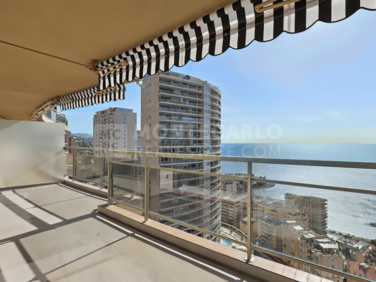 В современной резиденции с круглосуточным сервисом консьержа предлагается эта великолепная, полностью обновленная квартира с потрясающим видом на Монако и Средиземное море. Идеально расположенная рядом с пляжами Ларвотто, Международной школой и всеми удобствами, квартира включает: прихожую с гостевым туалетом, две спальни с ванными комнатами и гардеробными, третью спальню, просторную гостиную с открытой кухней, а также две террасы (переднюю и заднюю). Уникальное место, сочетающее роскошь, комфорт и идеальное расположение.