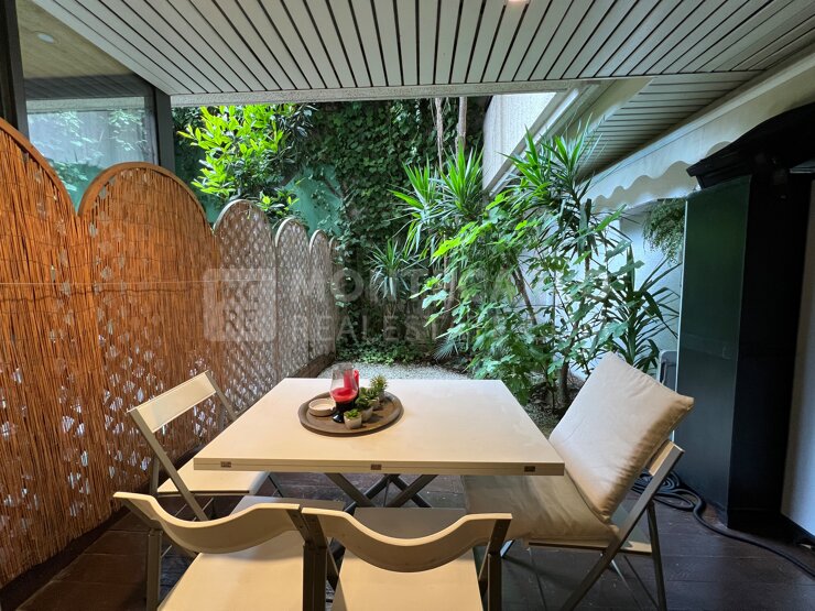Dans un immeuble de bon standing avec service de conciergerie, nous vous proposons en location meublée ce jolie studio avec jardin privatif, situé dans le quartier des MONEGHETTI.
