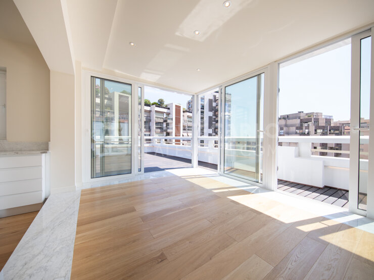 Прохладный и модный двухуровневый пентхаус в скандинавском стиле с видом на 180 градусов и исключительно большой деревянной террасой на крыше. У вас есть все места, чтобы создать уединенное и удобное для использования жилое пространство, чтобы извлечь выгоду из круглогодичного купания на солнце!
