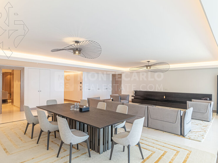Situé dans l’une des résidences les plus prisées de la Principauté, offrez-vous le privilège d’un art de vivre incomparable à Monaco, dans un cadre sécurisé et prestigieux. Cet appartement offre un cadre de vie rare et raffiné. Entièrement meublé avec goût et élégance, ce bien unique se compose d'un double séjour avec vue mer, une grande cuisine parfaitement équipée, 5 chambres en suite aux volumes généreux avec dressings et de nombreux placards.