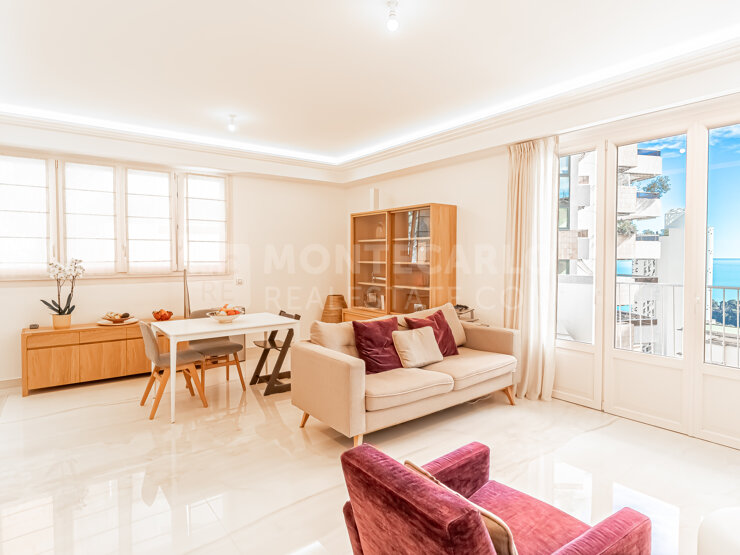 Confortable appartement de 3 PIECES principales, climatisé, entièrement rénové avec des matériaux de qualité. Belle vue mer de la terrasse principale en façade. Possibilité d'un parking situé dans une des résidences voisines de la copropriété.