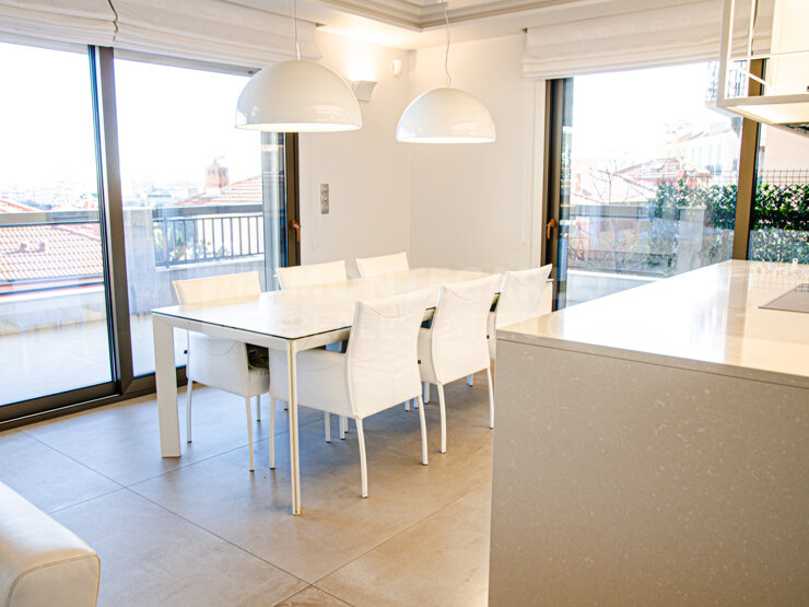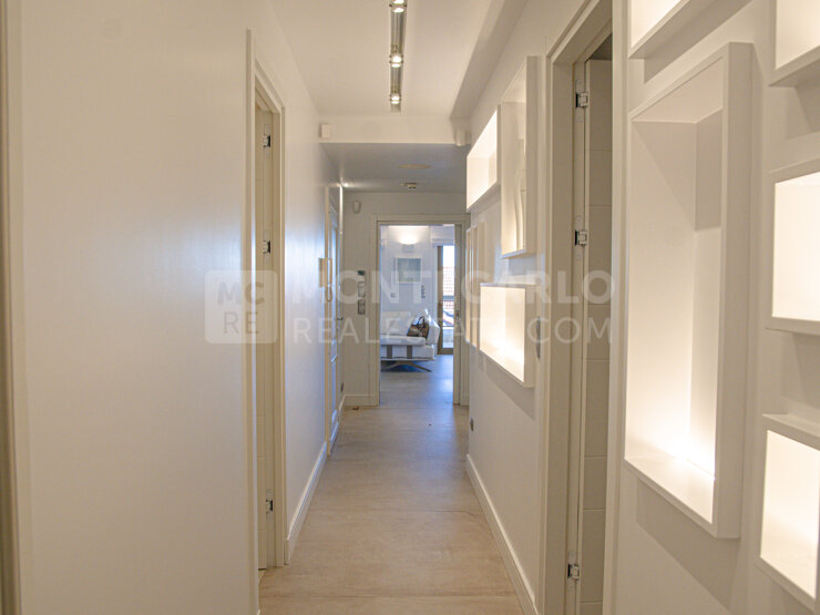 Grand appartement de 244 m2 entièrement rénové avec de beaux matériaux, situé dans une charmante résidence avec concierge sur le boulevard de Belgique.