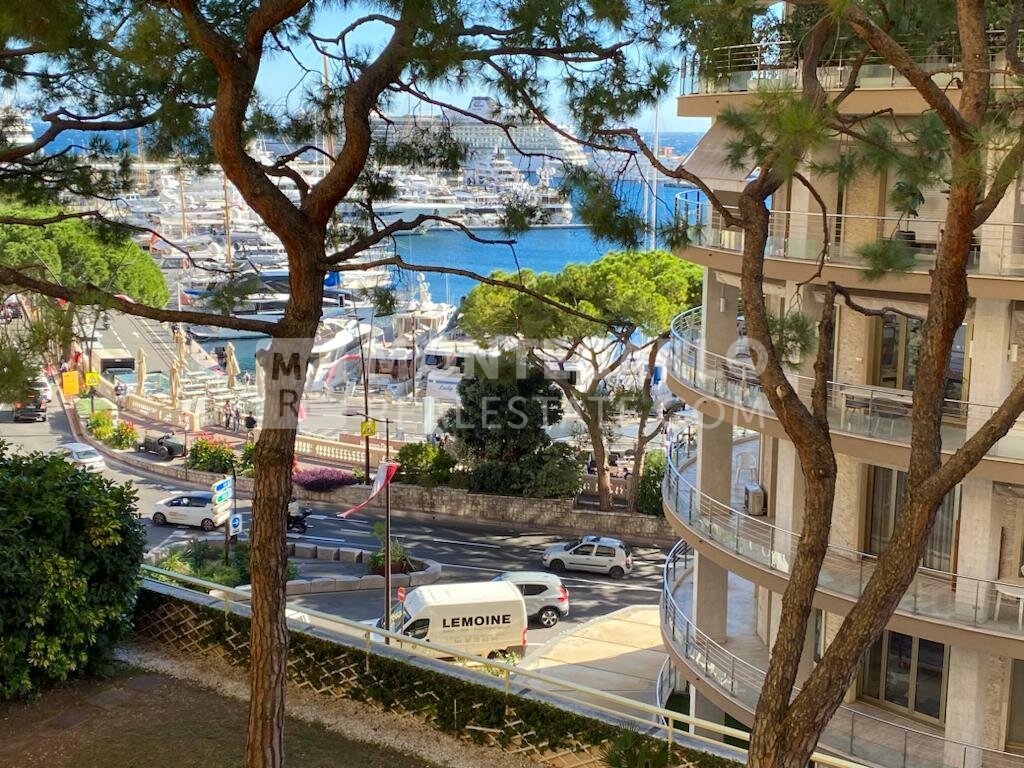 Au 5ème étage d’une résidence de très grand standing, exposé Sud avec vue magnifique sur le Port Hercule et sur le départ célèbre du Grand Prix de Monaco, grand appartement de deux pièces principales transformable en trois pièces, d’une superficie totale de 142 m², composé comme suit : un hall d’entrée, séjour, une chambre, une salle de bains, un office, une cuisine séparée, une terrasse couverte d’une superficie de 38m². Cave.
