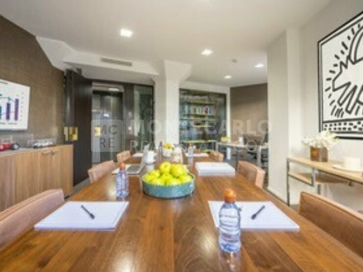Les services exclusifs proposés sont les suivants : une conciergerie 24/7, une entrée privée sécurisée, un interlocuteur toujours sur place, un nettoyage quotidien, une connexion WiFi haut débit dans tout l'immeuble, un meuble bar privé en bois et marbre Emperador pour chaque bureau, un interphone individuel, une surveillance vidéo 24/7.