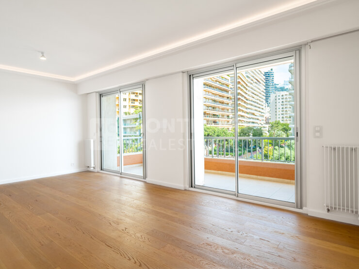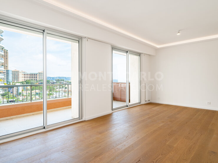 Avenue Princesse Grace, au 11ᵉ étage d’une résidence de standing avec conciergerie : élégant 2 pièces de 75 m² en rénovation, doté de 10 m² de terrasse, cave et parking.