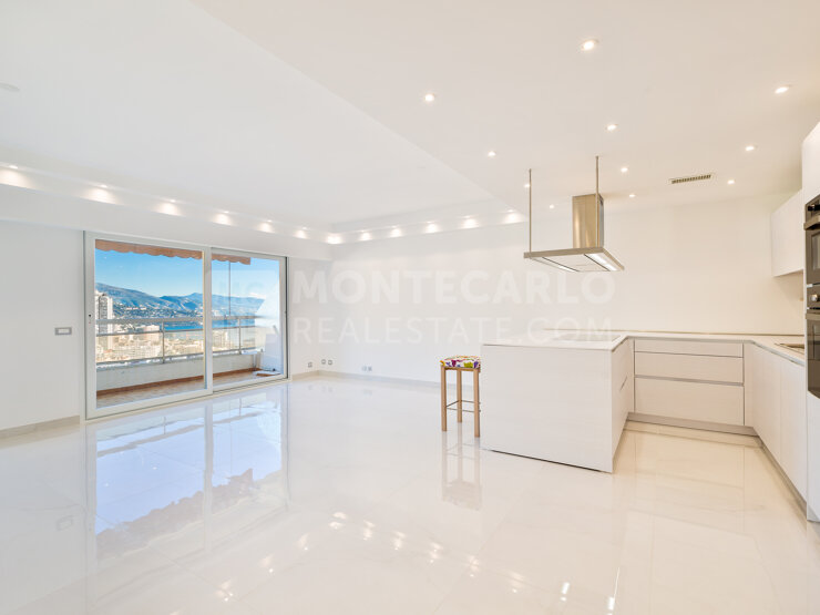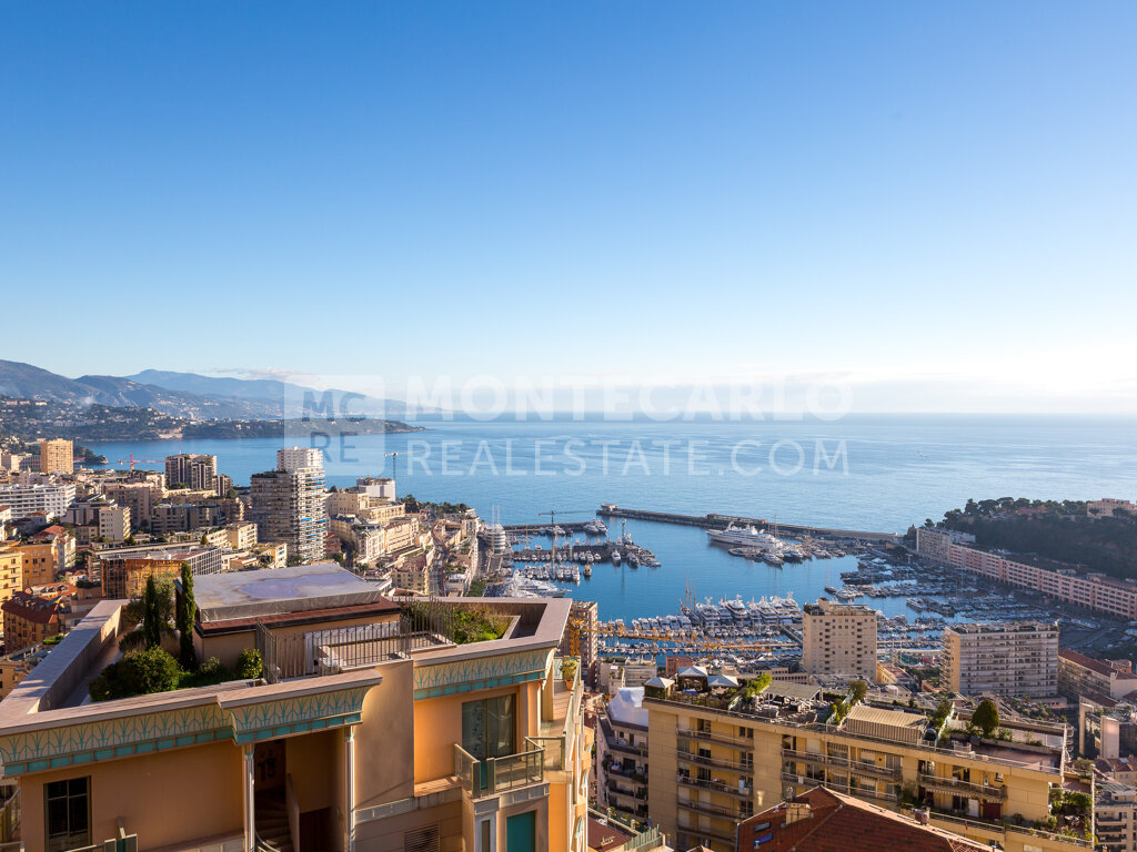 D’une surface habitable de 90,68 m² complétée par une terrasse de 27,70 m², cet appartement de 3 pièces, situé en étage élevé, bénéficie d’une vue panoramique remarquable sur la mer et le port de Monaco.