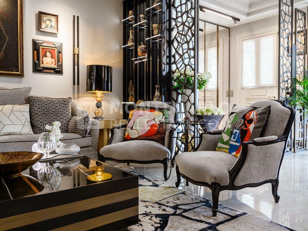 Cette exceptionnelle TOWNHOUSE, une vraie maison urbaine, typique des quartiers chics de Londres et unique à Monaco est abritée par les arbres et les massifs fleuris qui bordent son jardin privé. Entièrement meublé, il offre des prestations de grand luxe : les meubles sur mesure des maisons FERRE, RALPH LAUREN et ETRO. L’architecture d’intérieur est signé JUMBO COLLECTION, le créateur italien des demeures de luxe.