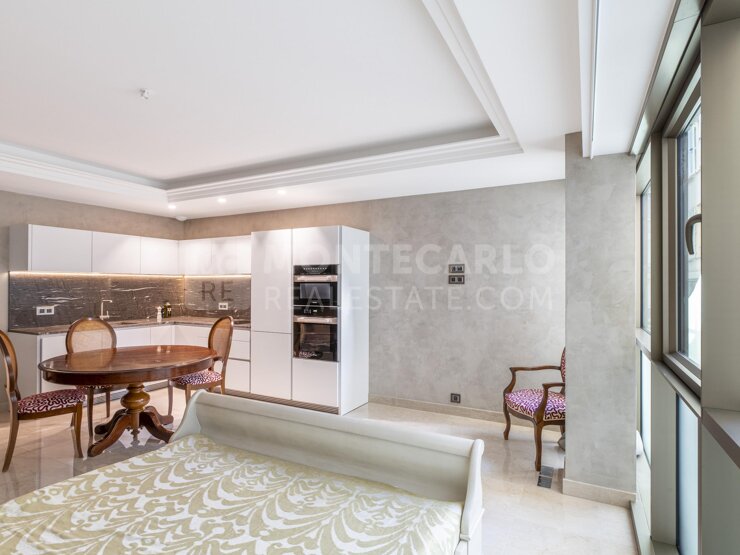 Joli studio de 43m2 situé dans une résidence avec concierge du quartier de la Condamine, proche de tous commerces et restaurants. Ce studio est composé d'un hall d'entrée, une pièce principale, une cuisine équipée, une salle de bains et une terras...