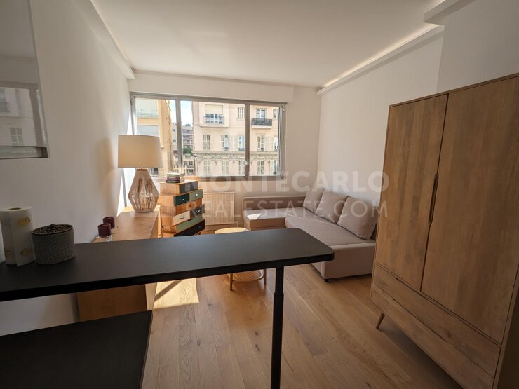Montaigne a:dans un immeuble de standing avec concierge, situé à quelques pas de la place du Casino. Entièrement rénové, ce studio accueillant est composé d'une pièce principale avec kitch...